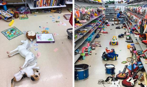 Кажется, ураган прошелся по отделу с детскими игрушками в этом магазине